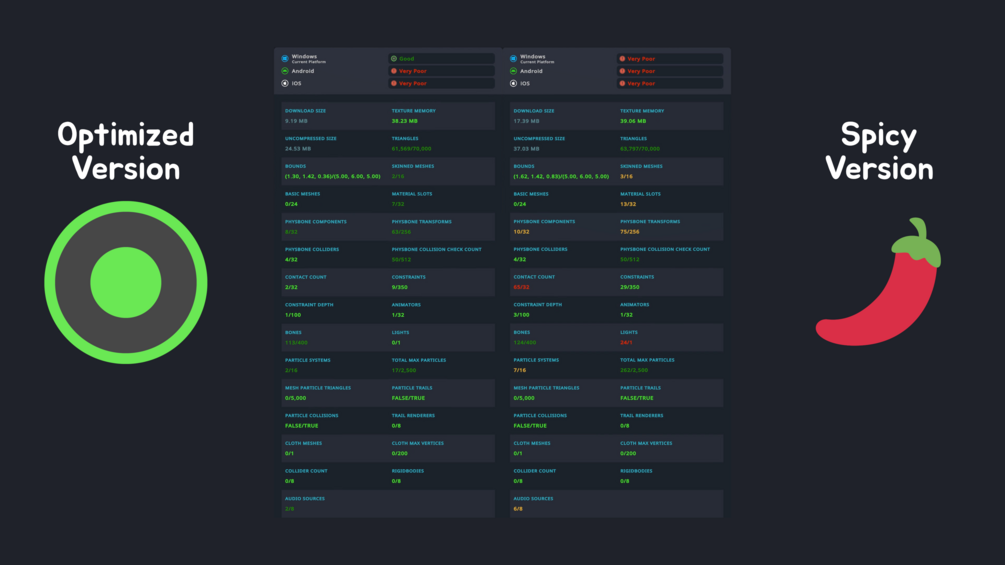 This is my first paid avatar! I made sure it's as optimized and Quest compatible as I can get it to be without compromising on any features. The optimized and Quest versions have access to all the toggles and sliders, they're not just a lazily generated using material combiner.